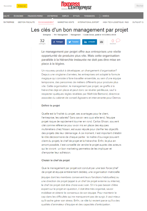 Le management par projet repose beaucoup sur les capacités du chef de projet à fédérer, guider le travail collaboratif pour une bonne cohésion. La réussite du projet se détermine dès ses prémisses : une bonne définition du projet, fixer le cap et rester focalisé sur le résultat à atteindre.